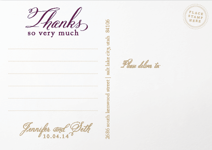 Thank You Postcards Photographic postcards measure 6 x 4.25 and offer a fun way for your guests to get another glimpse of your event. They require less postage than a traditional card and envelope.