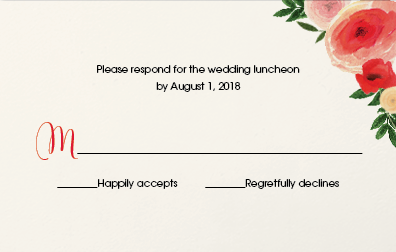 RSVP Postcard Prints on the same paper as the coordinating enclosures, but also includes printed self address on the backside of the postcard.